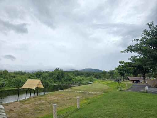 วิวภูเขาไกล ๆ ติดลำธารน้ำใส หญ้าเขียวชอุ่ม ทิวทัศน์ธรรมชาติสวยงาม แต่ต้นไม้ยังไม่เยอะมากเนื่องจากเพิ่งเปิดใหม่