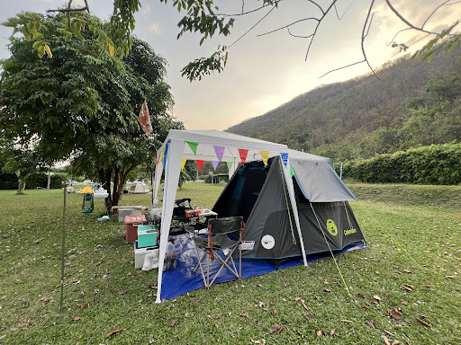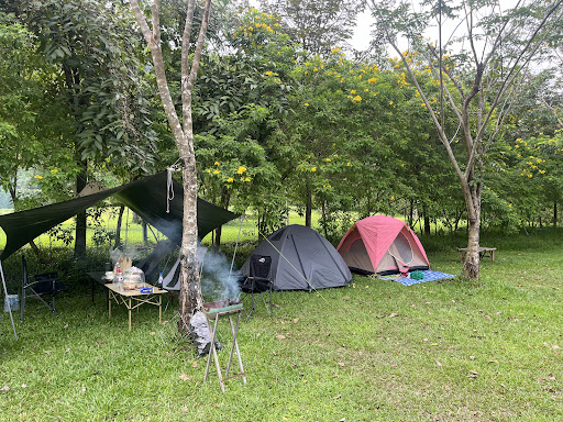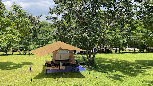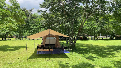 มีพื้นที่กางเต็นท์ให้เลือกหลายโซน ทั้งริมน้ำและบนหญ้าเขียวๆ รวมถึงบ้านพักสำหรับครอบครัวหรือกลุ่มใหญ่ด้วย