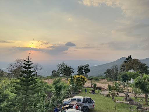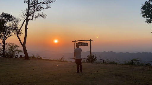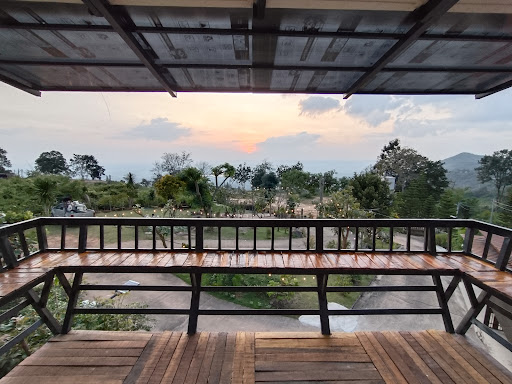 วิวพระอาทิตย์ตกดินสวยงามตระการตา มองเห็นทะเลหมอกในยามเช้าและทิวเขาเขียวชอุ่ม เหมาะสำหรับการถ่ายภาพธรรมชาติที่งดงาม