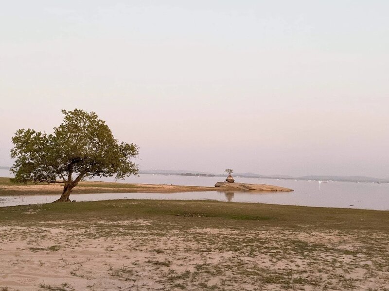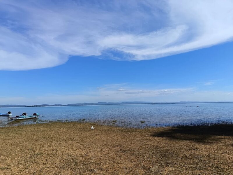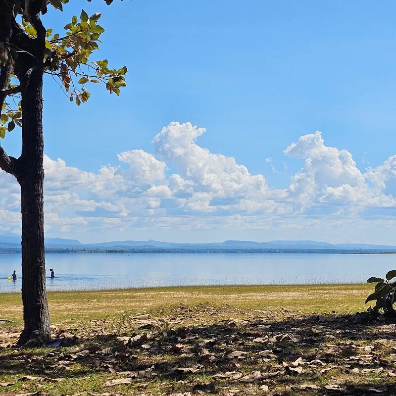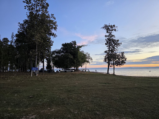 ทิวทัศน์สวยงามด้วยหาดริมเขื่อน ต้นมะพร้าวให้ร่มเงา และพระอาทิตย์ตกที่งดงาม ยามเย็นฟินสุดๆ