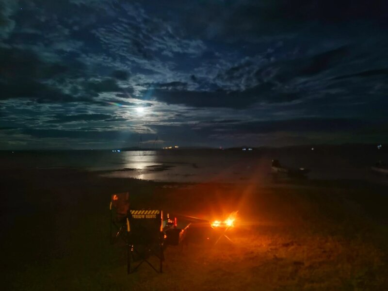 ต้นมะพร้าวที่ให้ร่มเงาทั้งวัน ลานกางเต็นท์ฟรี และวิวพระอาทิตย์ตกที่สวยงาม