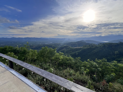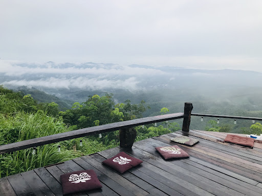 วิวสวยตระการตาด้วยทิวเขาสีเขียวขจีและทะเลหมอกหนาทึบ เหมาะสำหรับการชมพระอาทิตย์ตกและถ่ายภาพอันน่าประทับใจ