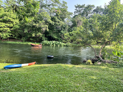 วิวแม่น้ำสวยงามโดยเฉพาะตอนเย็นที่แสงทองส่องกระทบน้ำ เหมาะสำหรับเก็บภาพความประทับใจ ลานสองชั้นริมน้ำให้มุมมองที่หลากหลายและเห็นลำธารไหลเอื่อยๆ
