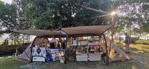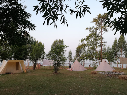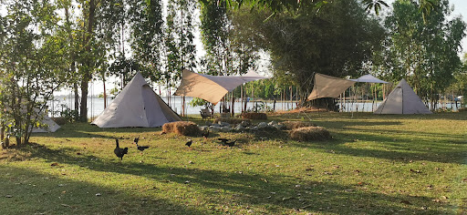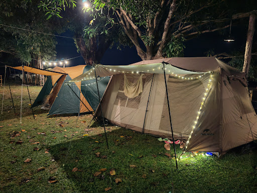 มีพื้นที่กางเต็นท์กว้างขวางใต้ร่มไม้ใหญ่ สามารถนำเต็นท์มาเองหรือเช่าเต็นท์จากทางลานได้ เต็นท์ที่ให้เช่าใหม่และสวยงาม
