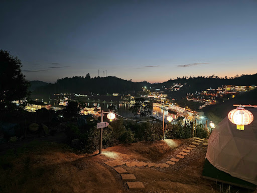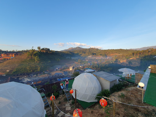 มีพื้นที่กางเต็นท์หลายจุดให้เลือก รวมถึงมีโดม กระท่อม และบ้านพักให้เช่า