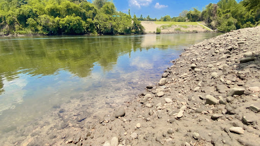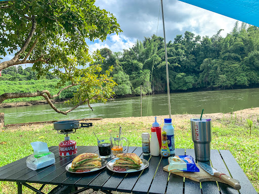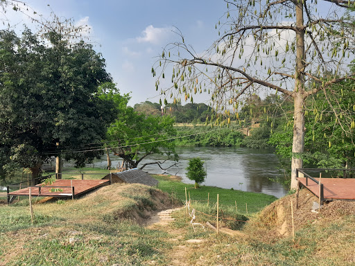 สถานที่สวยงามติดแม่น้ำ มีวิวน้ำที่สดใสเหมาะสำหรับการผ่อนคลายและถ่ายภาพ ทิวทัศน์ธรรมชาติร่มรื่น น้ำไหลเอื่อยๆ สร้างบรรยากาศชิลๆ
