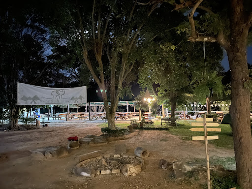 วิวแม่น้ำแควที่สวยงาม ลานหญ้านุ่มๆ ติดริมน้ำ กลางคืนเห็นดาวชัดเจน