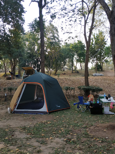 มีจุดกางเต็นท์ 2 ที่ ลานล่างติดแม่น้ำวิวดี ลานบนส่วนตัวกว่า รถแคมป์วานจอดได้