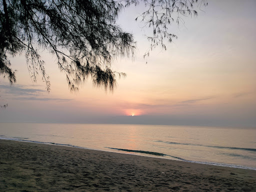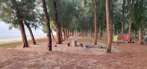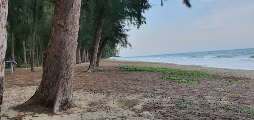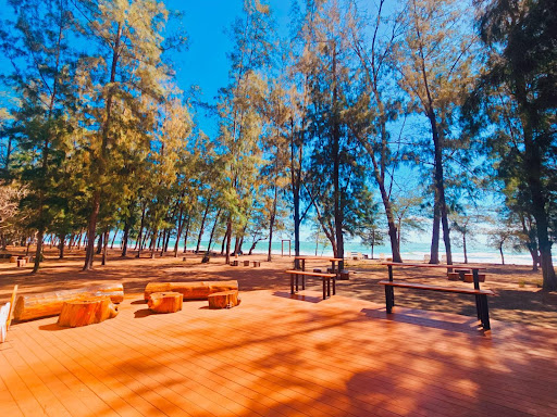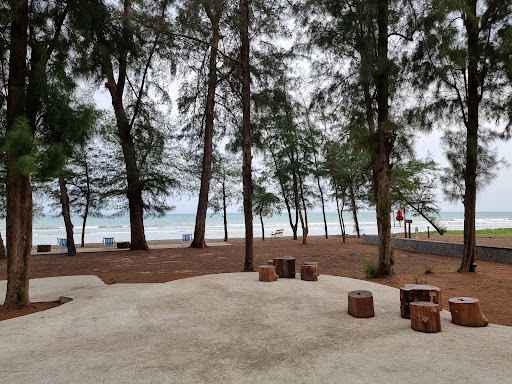 ทิวสนริมชายหาด หาดทรายขาวยาว บรรยากาศสงบเงียบ คาเฟ่ริมทะเล