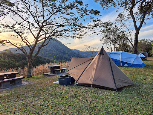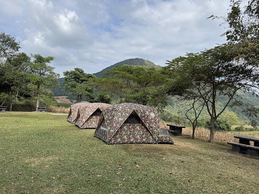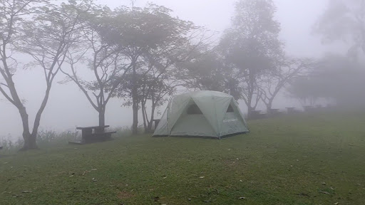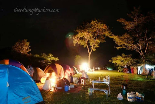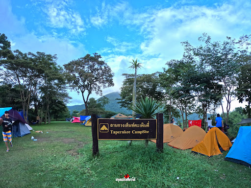 มีลานกางเต็นท์บนสนามหญ้า ร่มไม้ และมีโต๊ะเก้าอี้ให้บริการ พื้นที่ไม่กว้างมาก บางครั้งมีเต็นท์ของอุทยานให้เช่า
