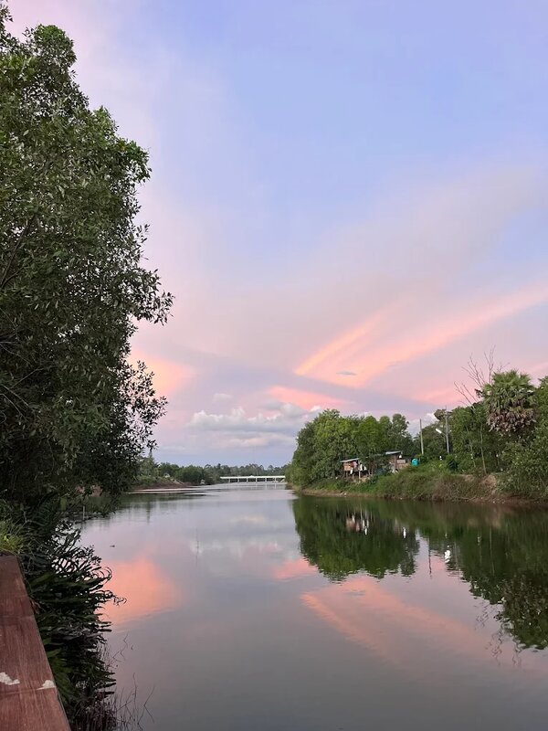 วิวติดแม่น้ำที่สวยงาม กับต้นไม้เขียวขจีและแสงธรรมชาติให้ความรู้สึกโรแมนติก