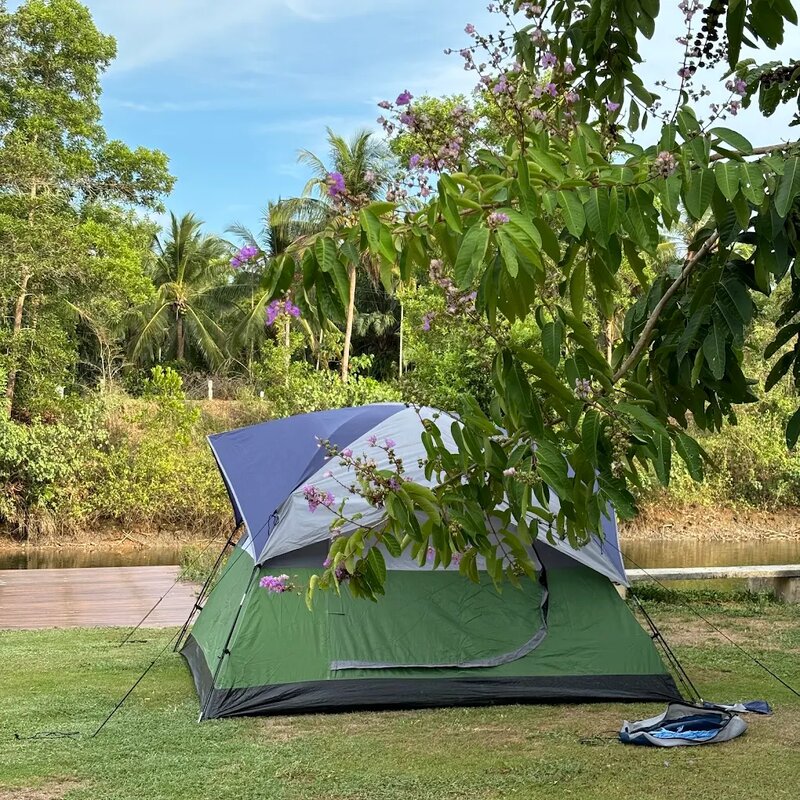 มีลานกางเต็นท์ ห้องอาบน้ำ ตู้กดน้ำ ที่ชาร์จโทรศัพท์ฟรี บอร์ดเกม สนามหญ้ากว้าง และสนามเด็กเล่น