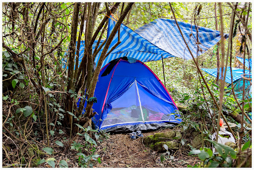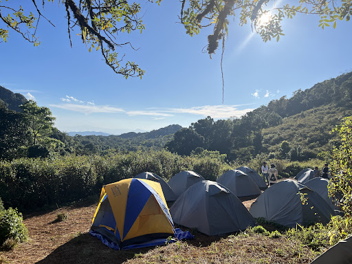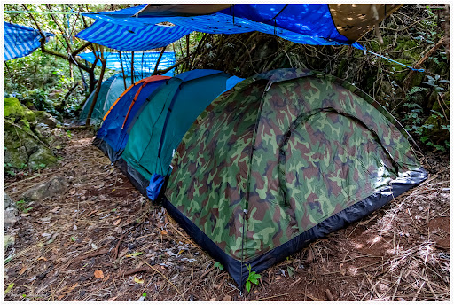 มีเต็นท์สำหรับกางพักแรม บางที่อาจเป็นลาดชันเล็กน้อยทำให้การนอนลำบาก