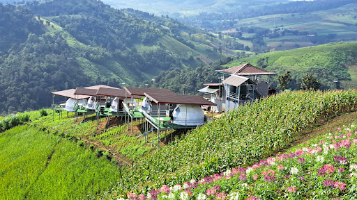 มีที่พักหลากหลายแบบ เช่น เต็นท์ โดม บ้านพัก โฮมสเตย์ ทั้งแบบลานกางเต็นท์และห้องพักพร้อมสิ่งอำนวยความสะดวกพื้นฐาน