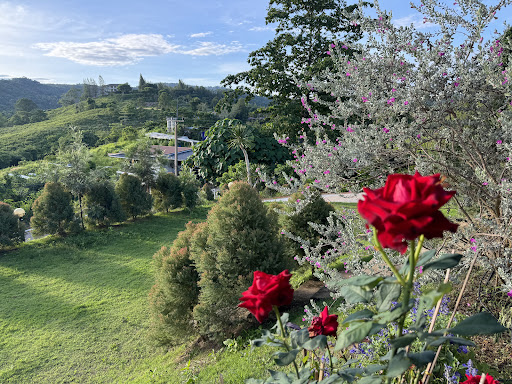 วิวสวยงามตระการตา จัดสวนอย่างประณีตบนเนินเขา เห็นทิวทัศน์ภูเขากว้างไกล บางครั้งมีหมอกหลังฝนตกเพิ่มความโรแมนติก