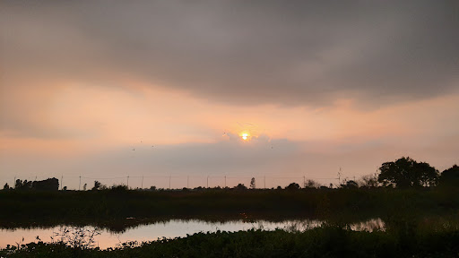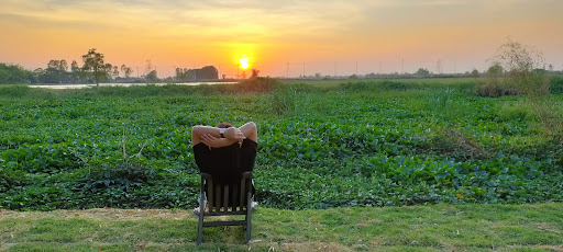 ทิวทัศน์ชนบทสวยงามด้วยคลองน้ำไหลตามธรรมชาติ บ่อน้ำตกปลา ทุ่งข้าวเขียวๆ และวิวพระอาทิตย์ตกที่โรแมนติก