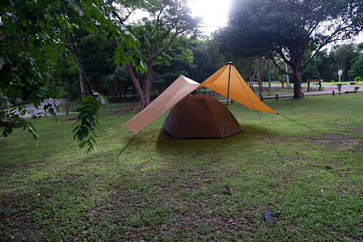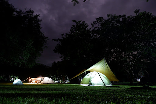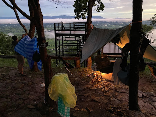 มีห้องพักและลานกางเต็นท์สองแบบให้เลือก คือลานใต้ร่มไม้ที่ร่มรื่นทั้งวัน และลานหญ้าโล่งที่วิวสวยกว้างไกล