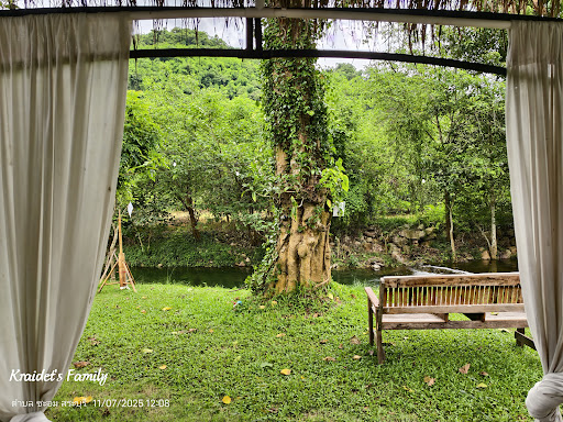ที่นี่มีลำธารน้ำใสเย็นไหลผ่าน ต้นไม้เขียวขจีร่มรื่น ให้บรรยากาศธรรมชาติที่สวยงาม เหมาะสำหรับการถ่ายรูปและผ่อนคลาย