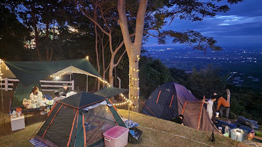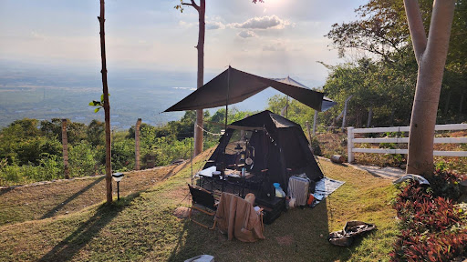 มีลานกางเต็นท์บนพื้นหญ้า ประมาณ 10 หลัง แบ่งเป็นโซนๆ ให้ความรู้สึกเป็นส่วนตัว เหมาะสำหรับผู้ที่ชื่นชอบการแคมป์ปิ้ง