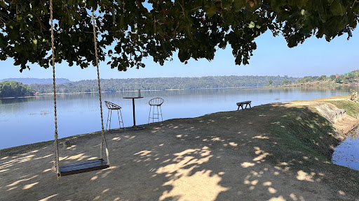 ลานจอดรถกว้าง ปลั๊กไฟพร้อมใช้หลายจุด มีร้านคาเฟ่และร้านอาหาร ที่นั่งสบายๆ มุมถ่ายรูปเก๋ๆ ชิงช้า และสะพานไม้ยื่นไปในน้ำ
