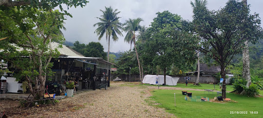 มีบริการที่พักแบบเต็นท์และพื้นที่กางเต้นท์ริมน้ำ สามารถนำอุปกรณ์มาเองหรือใช้บริการของร้านได้