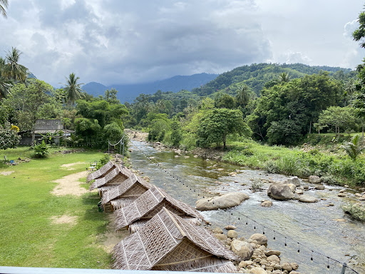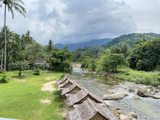 สถานที่สวยงามติดริมลำธารน้ำตกพรหมโลก มีทิวเขาและธรรมชาติรอบข้าง ให้ความรู้สึกสดชื่นและเป็นธรรมชาติ