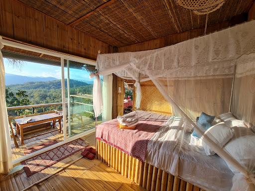ที่พักมีหลายแบบให้เลือก ทั้งบ้านหลังใหญ่และกระท่อมน่ารักทำจากไม้ไผ่ เช่น บ้านพันดาวและพิงตะวัน ตกแต่งสวยงาม มีห้องนอน 2-6 ห้อง และบางแห่งมีเตียงเสริมสำหรับดูดาว