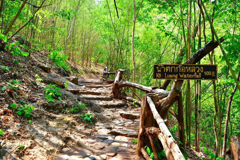 น้ำตกก้อหลวงสวยงามมากเหมือนในนิยาย มีน้ำใสสีฟ้าหรือเขียวมรกตไหลลดหลั่นกัน 7 ชั้นจากหินปูน ทิวทัศน์ธรรมชาติสมบูรณ์ ชวนให้ประทับใจ