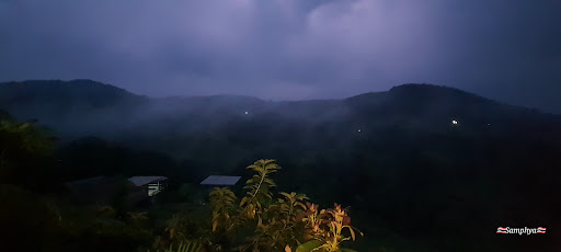 ทิวทัศน์เขียวขจีของภูเขาและหุบเขาที่สวยงาม ตอนเช้ามีแสงอาทิตย์ส่องผ่านแนวเขา บรรยากาศตอนค่ำมีดวงดาวเต็มฟ้า และพระอาทิตย์ตกดินที่ตระการตา