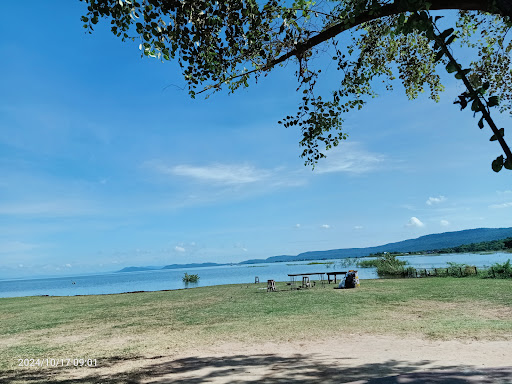 วิวสวยตระการตาติดริมเขื่อนอุบลรัตน์ พร้อมทัศนียภาพของภูเขาและผืนน้ำกว้าง บรรยากาศธรรมชาติที่เหมาะกับการถ่ายรูป