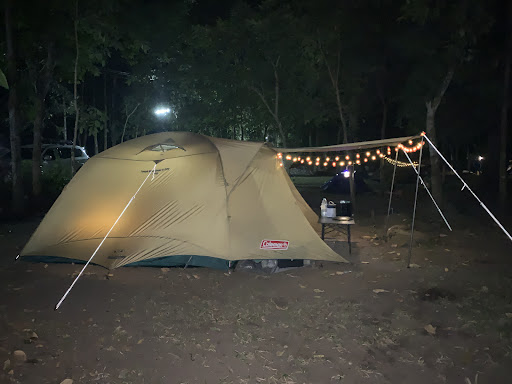 มีลานกางเต็นท์หลายจุดให้เลือก ทั้งริมลำธารและในพื้นที่ร่มไม้ พร้อมบริการเช่าเต็นท์และเครื่องนอน รวมถึงบ้านพักเป็นหลังสำหรับผู้ที่ต้องการความสะดวกสบายมากขึ้น
