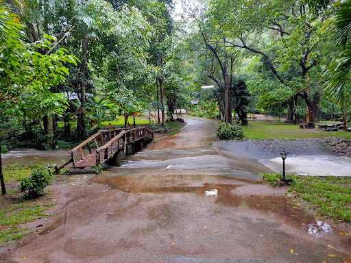 บรรยากาศเงียบสงบ ร่มรื่นด้วยต้นไม้ใหญ่ อากาศเย็นสบาย โดยเฉพาะในเวลากลางคืนที่มีเสียงน้ำไหลเอื่อยๆ ช่วยให้รู้สึกผ่อนคลายและใกล้ชิดธรรมชาติ