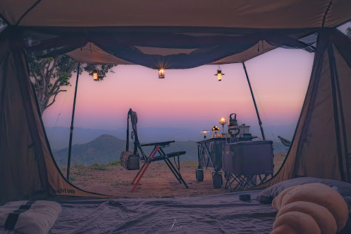 มีทั้งลานกางเต็นท์กว้างขวางและบ้านให้พักในกรณีฝนตกหรือต้องการความสะดวกสบายมากขึ้น เลือกได้ตามสไตล์การแคมป์ปิ้ง