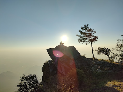 วิวสวยสุดตาจากยอดเขาสูงที่สุดในสุโขทัย ดวงอาทิตย์ตกกระทบหมอกไหล แสงสว่างสวยงาม มีสายรุ้งในสายหมอกให้เห็นบ่อยๆ พื้นที่ราบเบื้องล่างและทุ่งหญ้าผาหินสวยงาม มีพระเจดีย์สีทองตั้งเด่นบนก้อนหิน