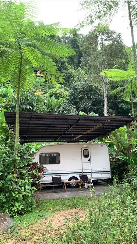 ธรรมชาติสวยงามพร้อมลำธารและน้ำตกเล็กๆ ที่พักรถบ้านที่สะดวกสบาย บริการจักรยานฟรี และห้องน้ำสะอาดมีน้ำอุ่น