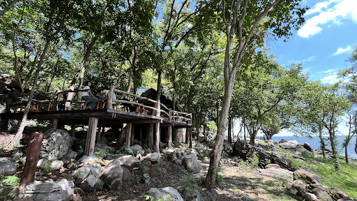 มีร้านคาเฟ่ขายเครื่องดื่มและของว่าง เช่น ชา กาแฟ ขนมจีบ แต่ไม่มีร้านอาหารเต็มรูปแบบ กำลังมีการปรับปรุงสถานที่