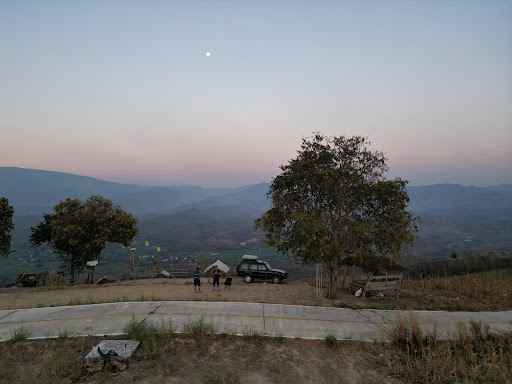 ที่ตั้งอยู่บนดอยสูง ทางขึ้นค่อนข้างท้าทาย ควรใช้รถขับเคลื่อนสี่ล้อหรือเตรียมใจสำหรับการขับขี่บนถนนแคบและหมอกหนา บางที GPS อาจพาไปทางที่รถขึ้นไม่ได้ ต้องโทรหาตากับยายเพื่อถามทาง