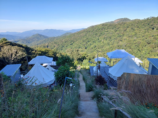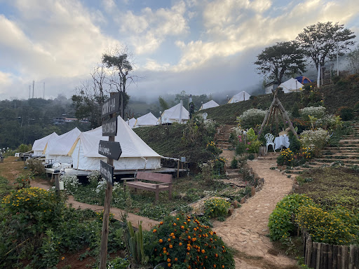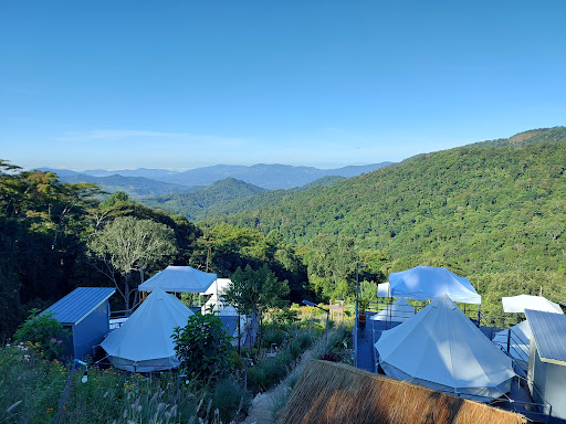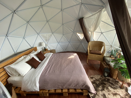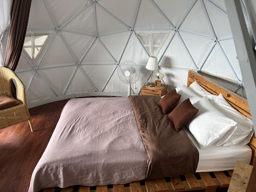 ที่พักมีทั้งบ้านหลังใหญ่และเต็นท์ที่ตกแต่งน่ารัก สะอาด และกว้างขวาง แบ่งสัดส่วนชัดเจนระหว่างห้องนอน ห้องนั่งเล่น และระเบียง