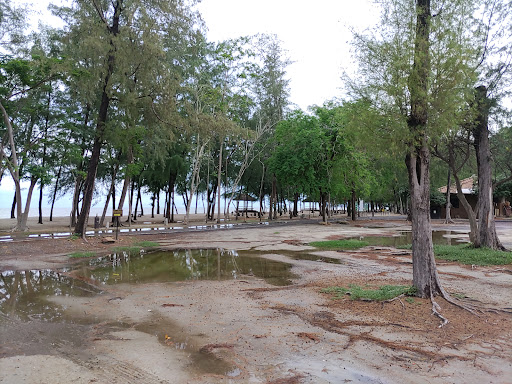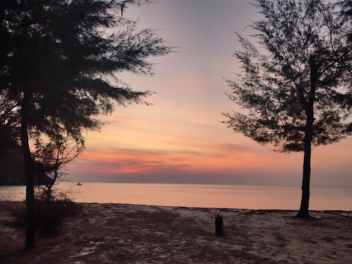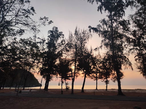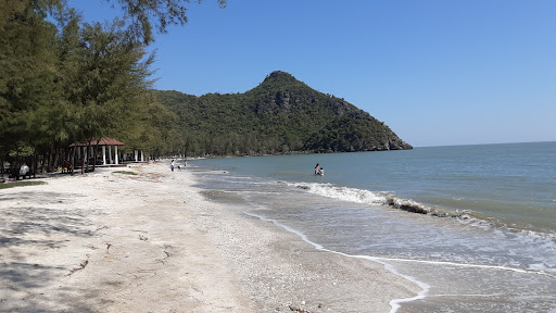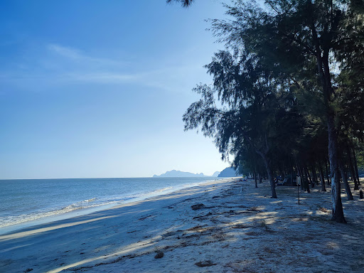 หาดทรายสวยทอดยาวพร้อมทิวต้นสนร่มรื่นริมทะเล มีวิวทะเลสลับกับภูเขาให้ชมอย่างเพลิดเพลิน