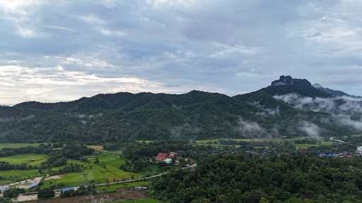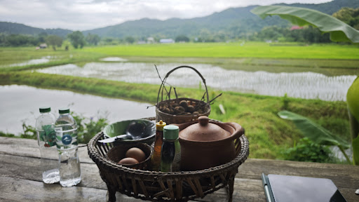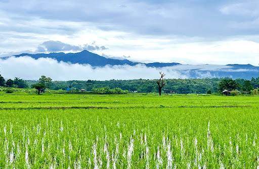 ล้อมรอบด้วยทุ่งนาสีเขียวขจีและภูเขาสูงตระหง่าน ท้องฟ้าแจ่มใสและหมอกหนาในบางช่วง ให้ความรู้สึกใกล้ชิดธรรมชาติอย่างเต็มที่