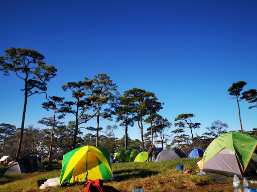 มีลานกางเต็นท์ 2 ลานหลักให้เลือก ลานที่ 1 คนเยอะและสะดวกกว่า ลานที่ 2 เงียบสงบกว่า แต่ต้องเดินไกลกว่า เต็นท์ให้เช่าหรือนำมาเองได้