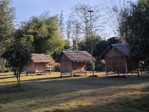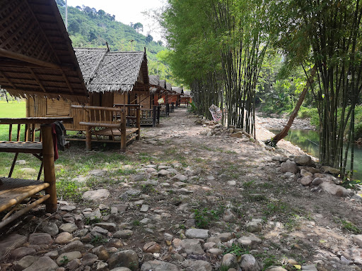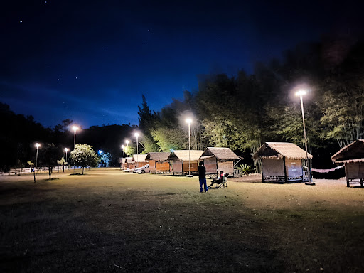 มีกระท่อมริมน้ำประมาณ 10-11 หลัง และลานกางเต็นท์กว้างขวาง พร้อมที่นอนและพัดลมสำหรับนอนสบาย