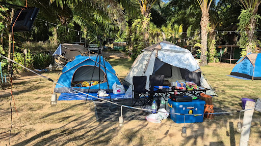 สิ่งอำนวยความสะดวกครบครัน มีไฟฟ้าให้ใช้ ที่ล้างจานชามใกล้ๆ และอุปกรณ์กางเต็นท์ให้เช่า