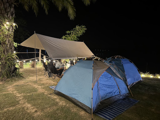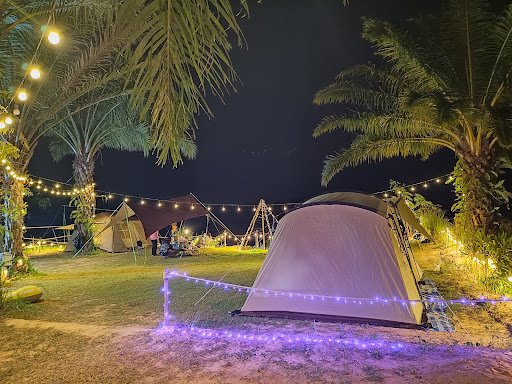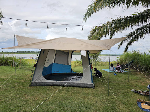 ที่พักเป็นลานกางเต็นท์บนพื้นหญ้านุ่มๆ มีเต็นท์ให้เช่า หรือนำเต็นท์ของตัวเองมากางได้