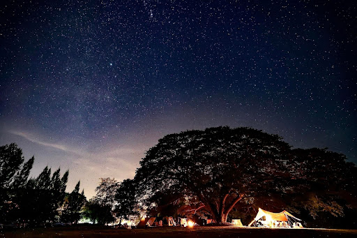 ที่นี่มีต้นจามจุรียักษ์ตั้งตระหง่านกลางลานกว้าง ห้อมล้อมด้วยทุ่งหญ้าเขียวขจีและลำธารน้ำใสไหลเย็น ทิวทัศน์ธรรมชาติสวยงาม เหมาะสำหรับถ่ายรูปเช็คอินสวยๆ และชมดาวตอนกลางคืน