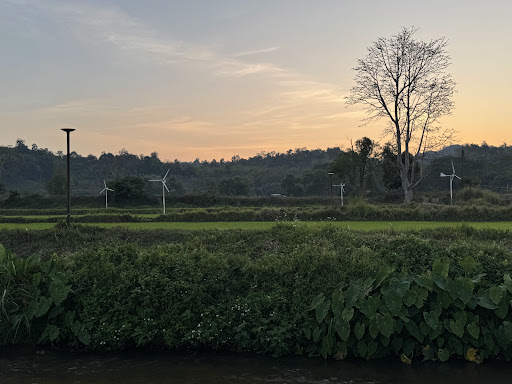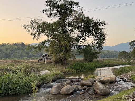 ทิวทัศน์สวยงามด้วยทุ่งนาเขียวขจีและลำธารเล็กๆที่ไหลเอื่อยๆ ให้ความรู้สึกใกล้ชิดธรรมชาติสุดๆ