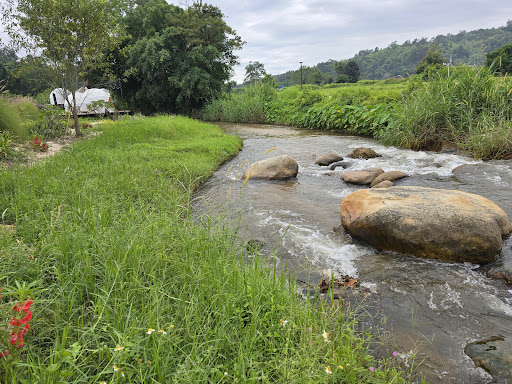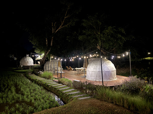 มีที่พักหลากหลายทั้งบ้านเคบิน โดม และเต็นท์โดมจีโอเดสิก ทุกห้องมีระเบียงส่วนตัวและติดลำธารให้ความเป็นส่วนตัวสูง