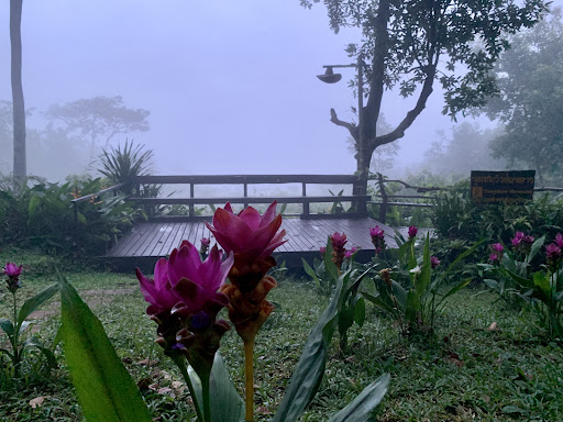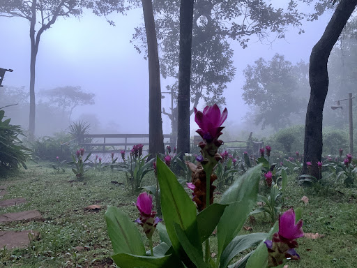 วิวภูเขาสวยงาม ทิวทัศน์กว้างไกล มองเห็นดวงดาวเต็มท้องฟ้าในตอนกลางคืน และมีดอกกระเจียวบานสวยในช่วงฤดู
