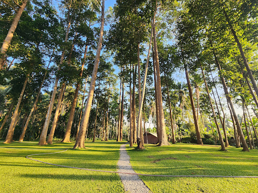 สถานที่ตั้งอยู่ท่ามกลางต้นยางนาสูงใหญ่ ให้ความรู้สึกร่มรื่นและใกล้ชิดธรรมชาติ หญ้าเขียวนุ่มเท้าทั่วทั้งลาน วิวสวยงามเหมาะกับการถ่ายรูปและผ่อนคลาย