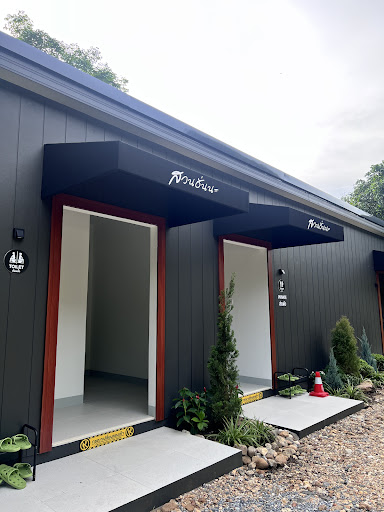 ห้องน้ำสะอาดมาก มีทั้งแบบรวมฟรีและส่วนตัวในราคา 300 บาท/คืน พร้อมน้ำอุ่น อ่างล้างจานหลายจุด และอุปกรณ์เช่นสบู่เหลวกับกระดาษชำระ